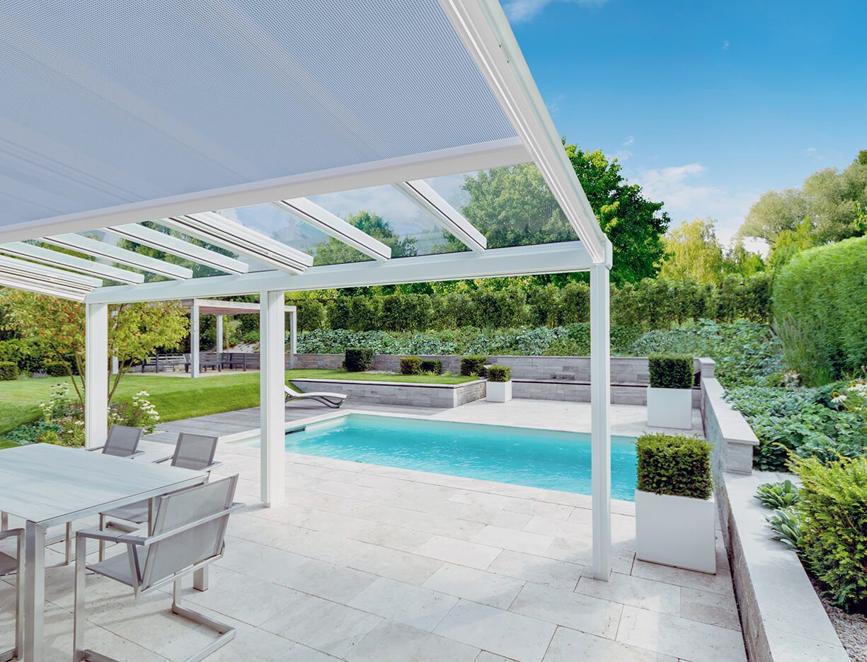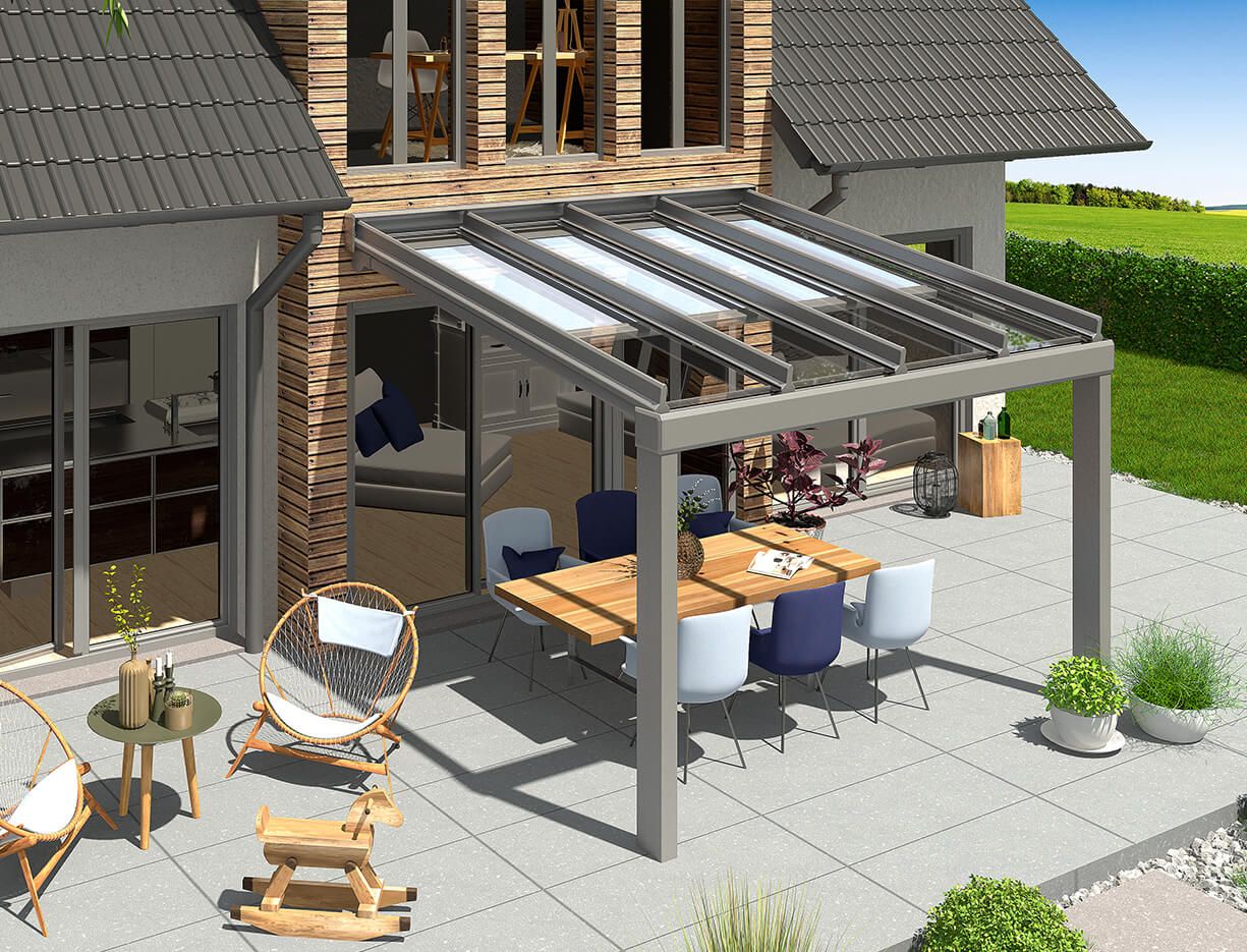Mit einem Terrassendach genießen Sie die Freiluftsaison ohne Beeinträchtigungen durch Wind und Wetter.