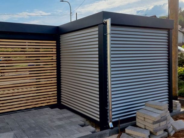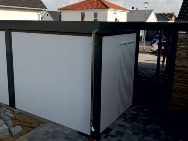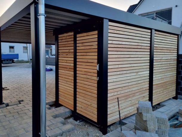 Maximieren Sie den Nutzen Ihres Carports! Wählen Sie die Variante mit Geräteraum, um zusätzlichen Stauraum für Gartengeräte, Fahrräder oder andere Utensilien zu schaffen. Praktisch, organisiert und alles an einem Ort.