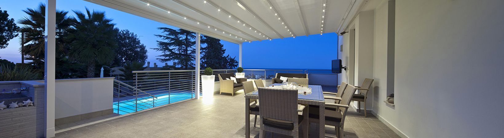 Die Pergola QUBE Line ist ein innovatives Produkt mit präziser und zuverlässiger Tuchführung, das die Leichtigkeit der Formen mit den guten Schutzeigenschaften des Tuches vereint. Die Tuchführung verläuft innerhalb der Führungsschienen und die Mechanik verschwindet in der besonders schlanken Struktur. Die Qube Line mit Ihrem eleganten Design integriert sich perfekt in Ihre Umgebung an.