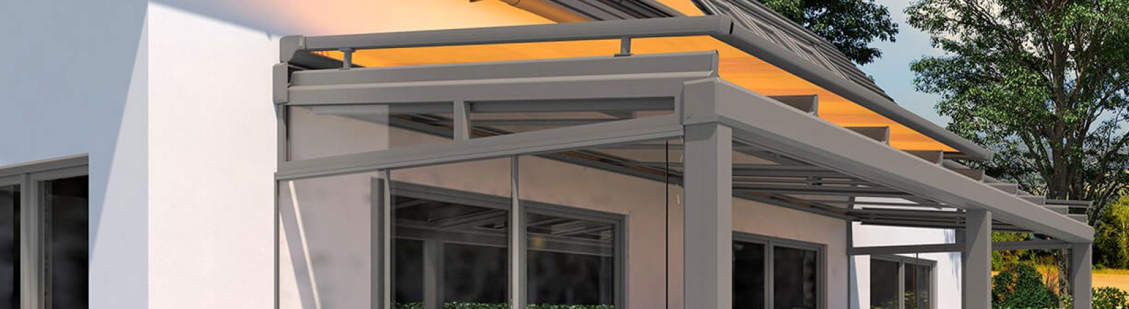 • Die zahlreichen Lichtschienen und die im Sparren integrierte Beleuchtung ermöglichen eine elegante Ausleuchtung des Terrassendaches, je nach Anforderung.