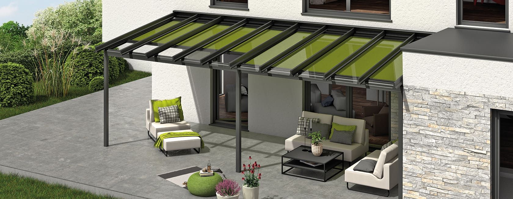 • Die Lieferung des -Terrassendach T100 INTEGRAL erfolgt komplett vorkonfektioniert.